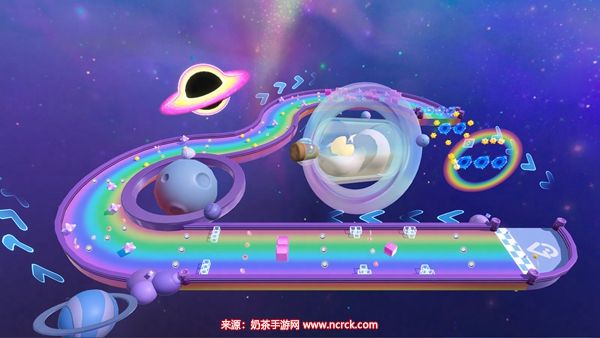 在星环跑道上玩家可以欣赏到群星环绕的宇宙美景。然而,这并不是一场轻松的赛事。完成两圈即为胜利的星环跑道充满了紧张刺激的元素,需要玩家全力以赴。