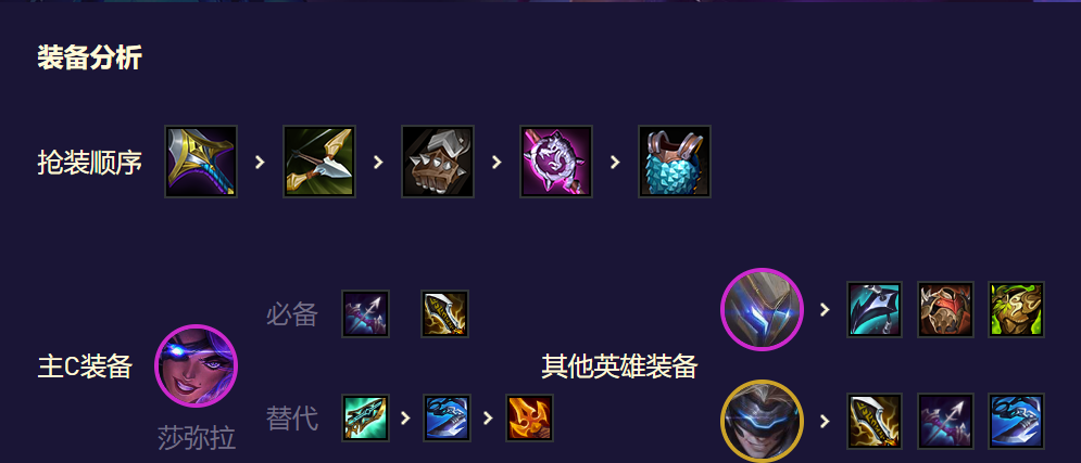 莎弥拉的装备推荐:无尽、轻语、科技枪、杀人剑、巨杀等。