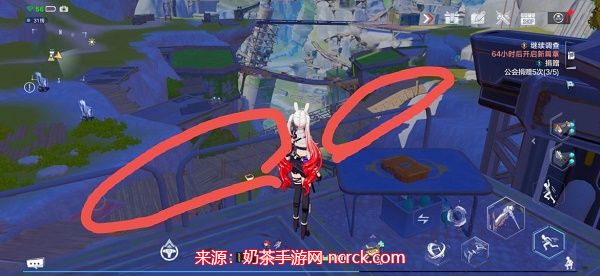 当你站在台子上时,注意寻找一个紫色的剪头,它应该非常显眼!进入剪头所在位置,你会发现斯托克的巢穴。请注意,如果你的角色较高,小编建议你蹲着进入巢穴。蹲下按钮位于设置的第一页最后,你可以自行查找。