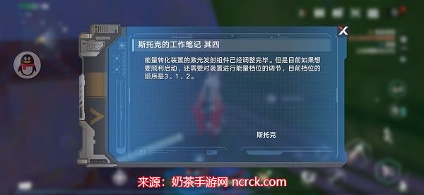 现在,回到最初触发任务的地点。在这里,按照斯托克的启动顺序,依次启动三个机器。完成这一步骤后,你将成功触发幻塔斯托克任务,并获得任务所需的关键物品。