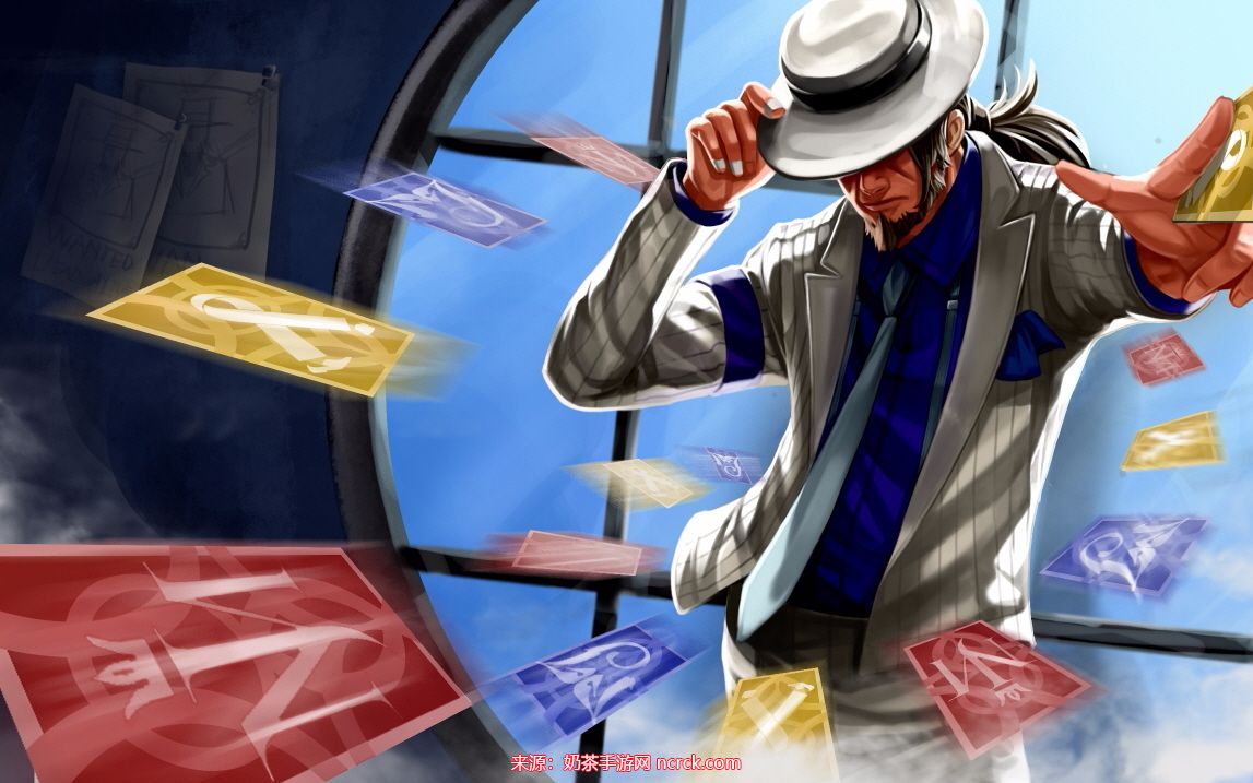 Q技能:万能牌 向前扔出三张牌,对敌方单位造成魔法伤害。