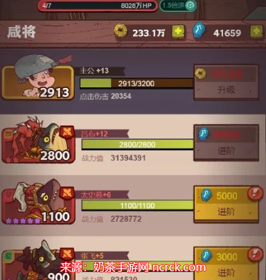 目前前期版本中,吕布无疑是最强的角色。在前期,将所有资源集中给吕布,例如进阶石、精铁等,直接给吕布即可。其他角色的装备挂件可暂时维持+5,主要目的是为了开启所有技能。