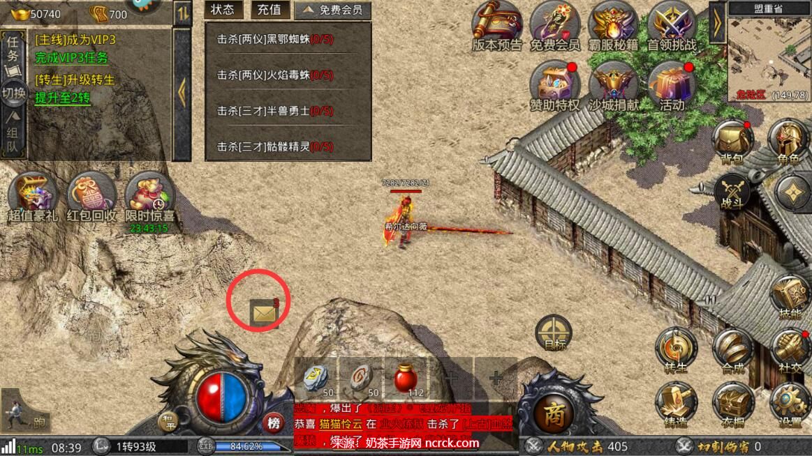 5、点击确定后会提示礼包已领取,然后返回游戏主界面找到“邮件”图标。