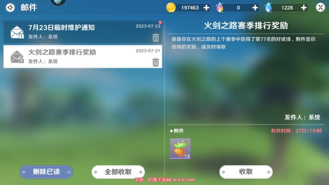5、成功输入兑换码后,系统会自动将奖励发送至你的邮箱中。前往邮箱,点击收取奖励,就可以轻松获得丰厚的奖励了!