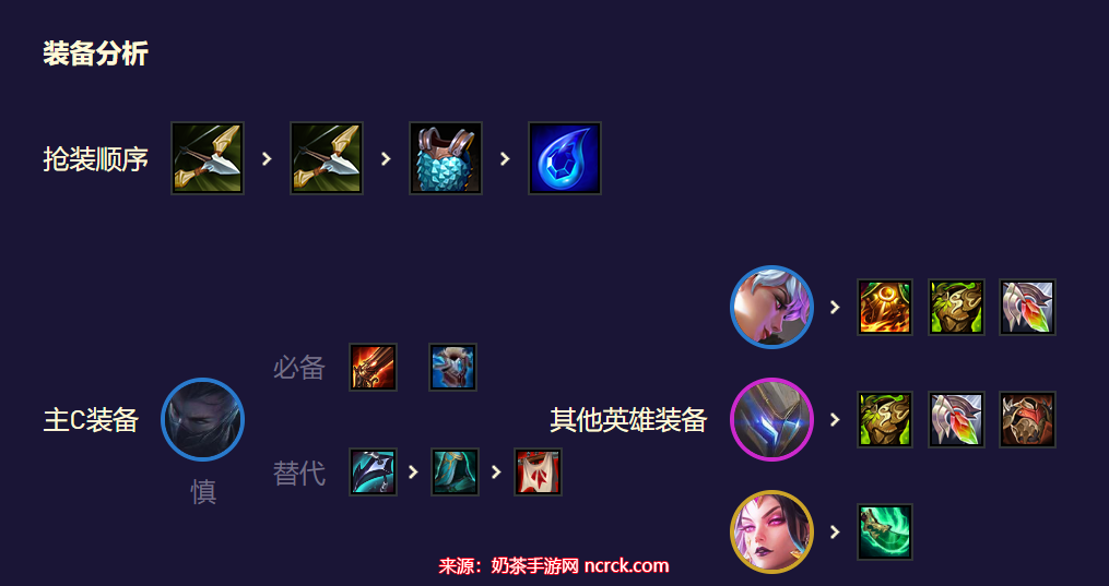 其他英雄如辛德拉可以给予青龙刀,只要多放放技能就可以发挥较好的作用。