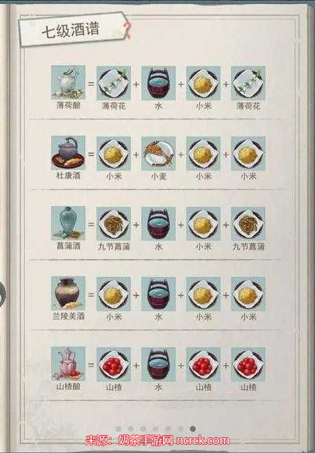 2、杜康酒:小米+小米+小米+小麦,归属:烧酒。