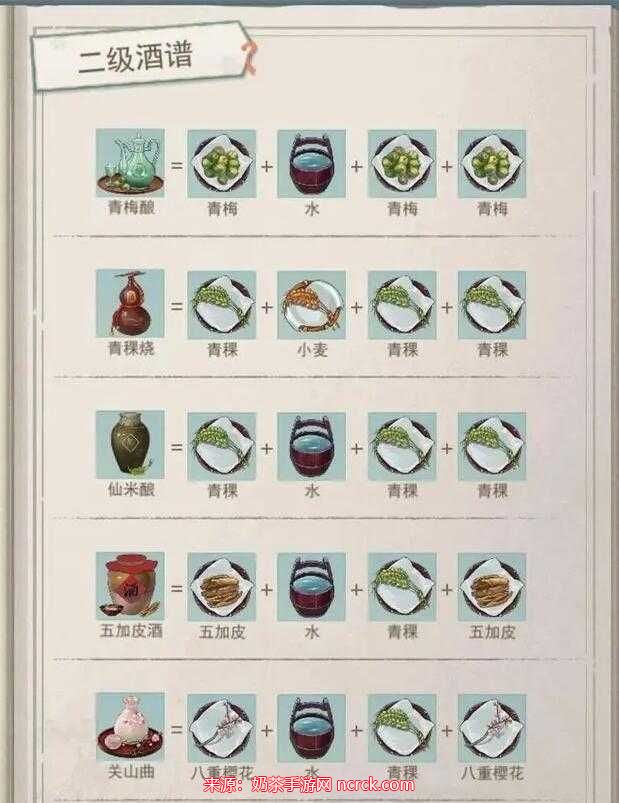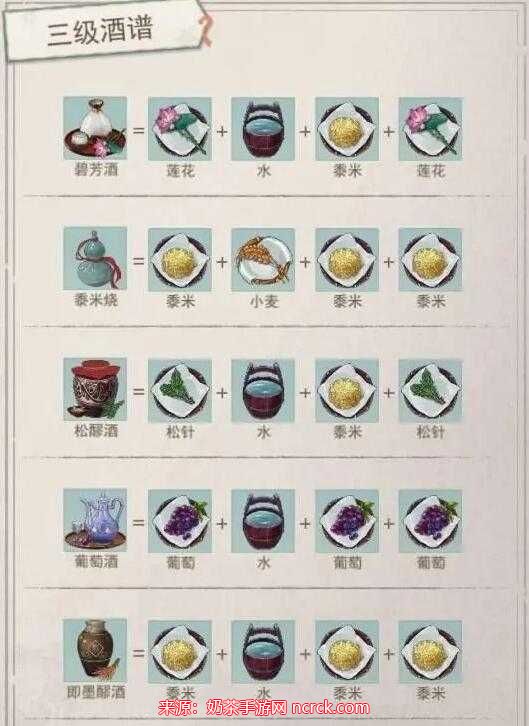 2、黍米烧:黍米+黍米+黍米+小麦,归属:烧酒。