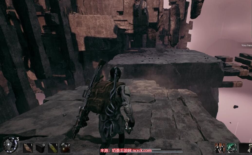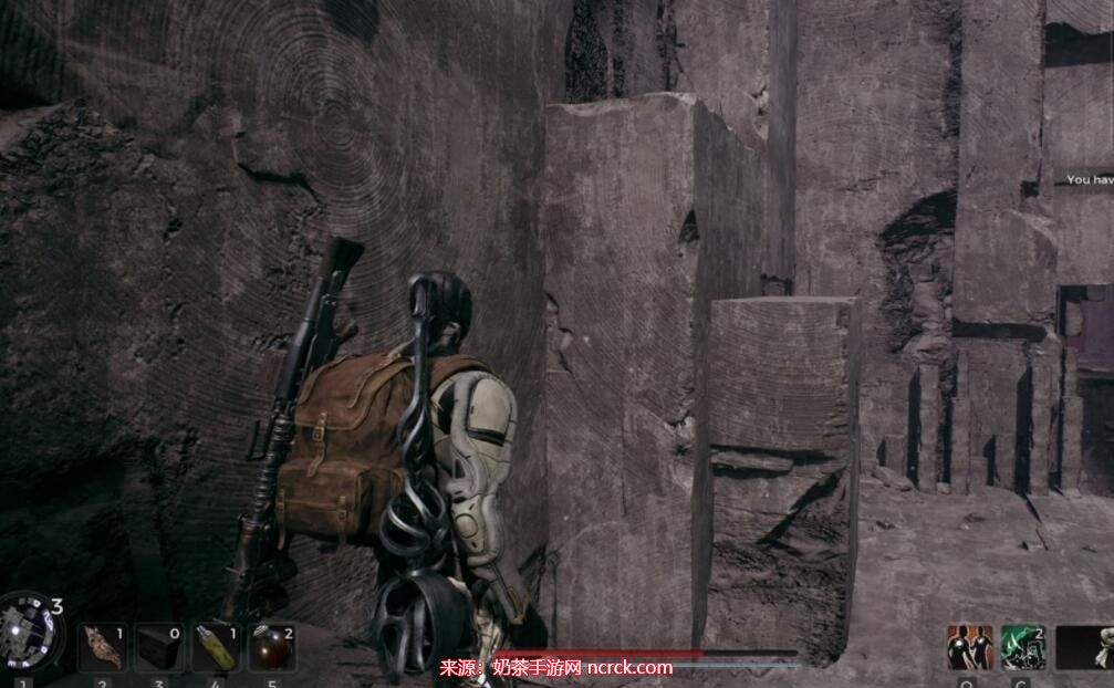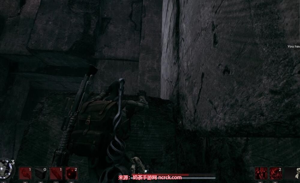 然后再次左转,您会看到墙壁上凸出的石块。利用石阶反复跳跃并爬上墙壁,按照下方图片的示意。