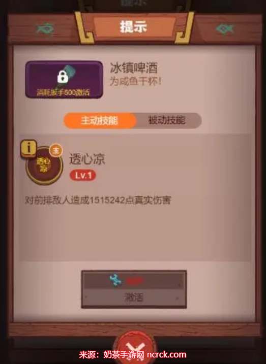 冰镇啤酒: 冰镇啤酒的主动技能对前排敌人造成真实伤害,并且随着等级的提升,其伤害也会相应增加,更有概率冻结敌人,有效地控制对手。而且其被动技能能够提升全体上阵咸将的攻击、血量、免控、格挡和速度,为团队带来全方位的增益效果。