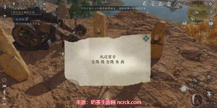 第三处解谜地点同样位于宋辽边境。在这里,您将面对类似的风过留音解谜挑战。记得使用技能【风起云涌】,按照正确的顺序吹响石块,解开谜题并获取宝箱奖励。