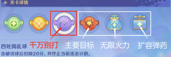 集中攻击连锁殉爆球、无限火力球、弹药多多球。这些气球是我们获得高分的关键。