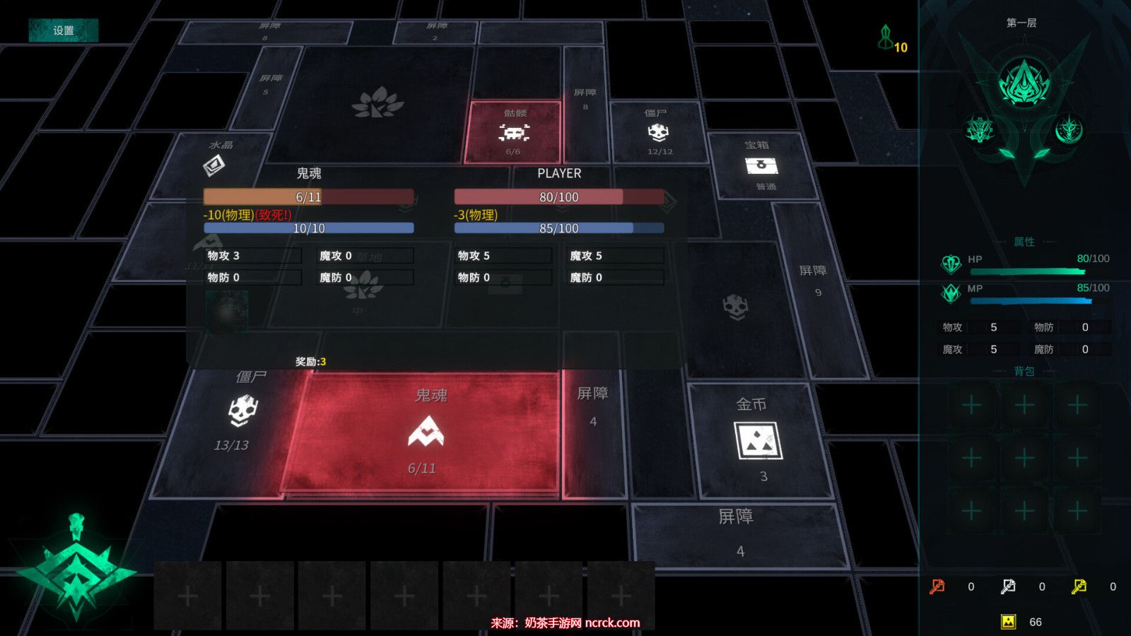 地牢冒险和探索回合制:玩家需要选择合理的路线,寻找隐藏关卡,精心组合技能,才能在地牢中生存并到达最高层。