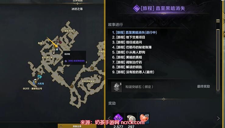 继续第二条任务线“直至黑暗消失”,在第一条任务线旁边的终点可以接取。