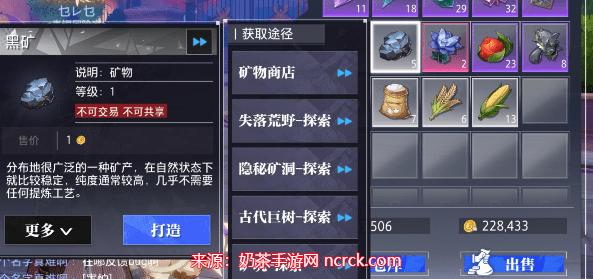 与妮可对话,选择购买矿物,然后选择晶核黑矿进行购买。