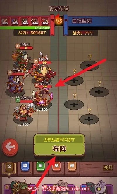 在布阵界面,将咸将放置上阵,然后点击布阵即可获得罐子。