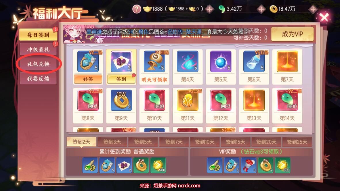 2、接着,点击进入福利大厅,你就能看到礼包兑换的菜单了。