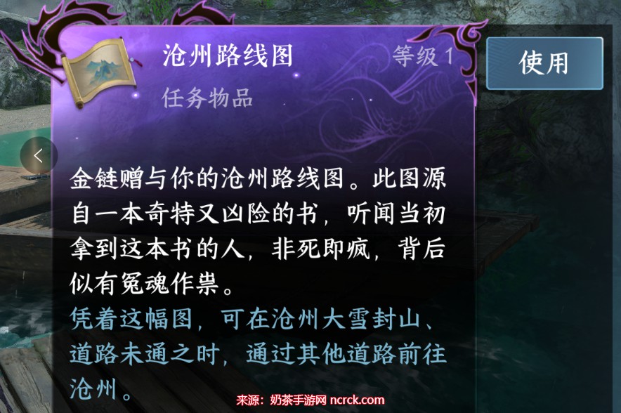 寻找沧州地图:首先,在任务“一生一世双人”的盈玉楼进度中(坐标116,108),拾取沧州地图。