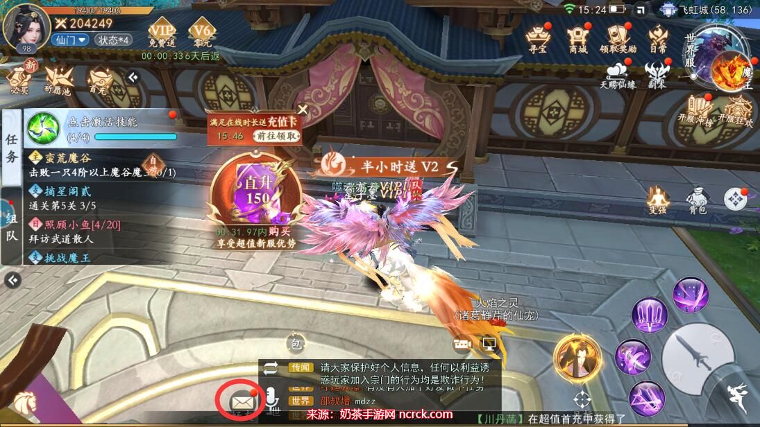 5、回到游戏界面,找到左下角的邮箱图标,点击进入。