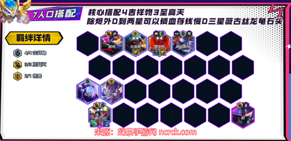 在7人口时,继续提升三星卡的数量,如果有同行阵容也较少,可以升级至8人口补充龙王。如果有吉祥物转职,可以升级至8人口补充努努/狗头,开启6吉祥物效果。