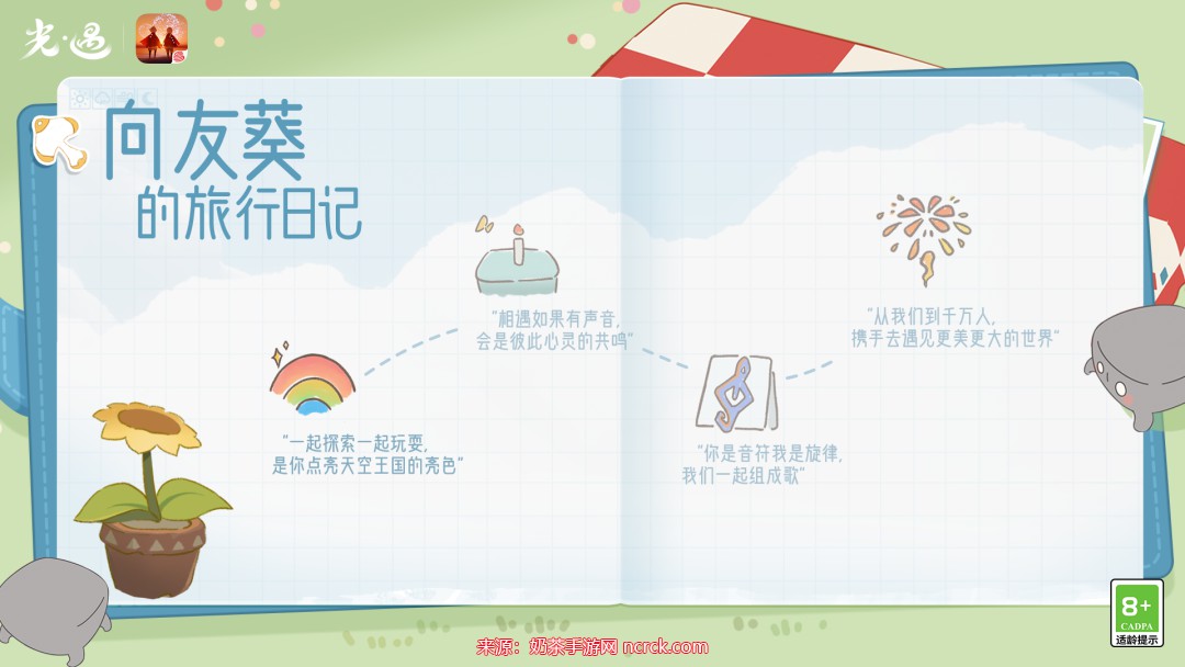 查看手账:在有友节活动期间,你可以在遇境中找到一个向日葵,点击它可以直接查看旅行手账。