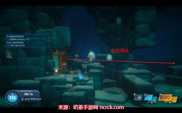 出了鲛人村,前往深海地区。遇到巨口鲨之后左拐,游到头,有一条向上的通道,生活着一群水母,通过通道即可看到矿石