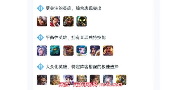 T3:亚瑟、元歌、廉颇、孙策、猪八戒、刘邦、芈月、杨戬。