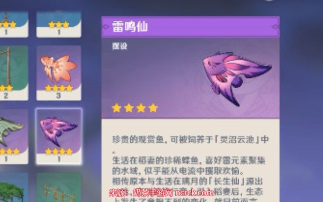 雷鸣仙鱼是兑换新武器渔获所需的重要鱼类。玩家需要收集6条雷鸣仙鱼、20条金赤假龙和20条锖假龙,然后前往稻妻的钓鱼协会NPC处购买武器。