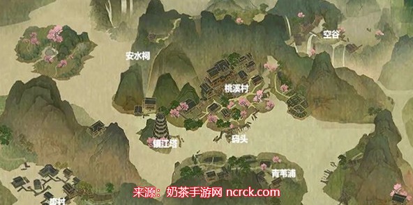 1、首先我们传送到上述桃溪村的位置之后,我们需要向西飞过去就可以看到一个屋子,我们到达屋子小面就可以触发探索任务【安水鸣钟】;
