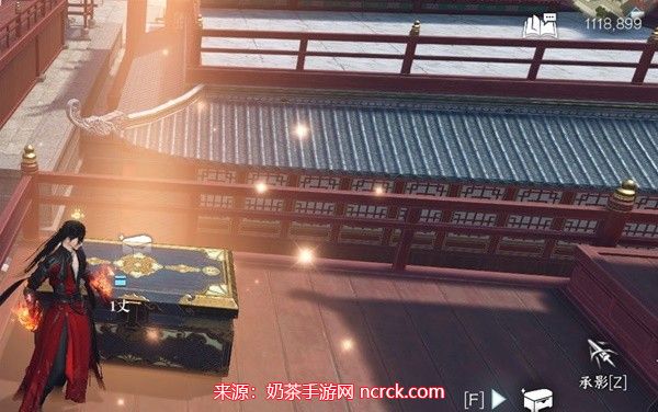 跟随金色蝴蝶的移动,直至到达旁边的平台。在平台上会显示一个箱子。