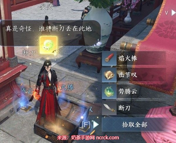 在甜水巷入口附近找到一个箱子。断刀就在该箱子旁边的NPC手中。