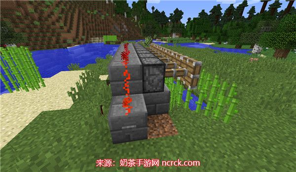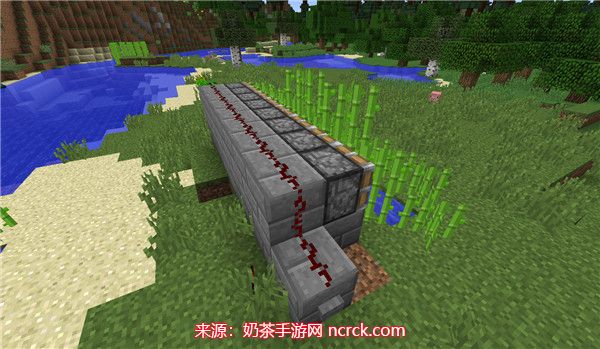 需要注意的是,红石必须与活塞放置在同一高度,并且活塞的高度至少比甘蔗高一格,这样才不会破坏最底层的甘蔗,确保我们可以持续地收割甘蔗。