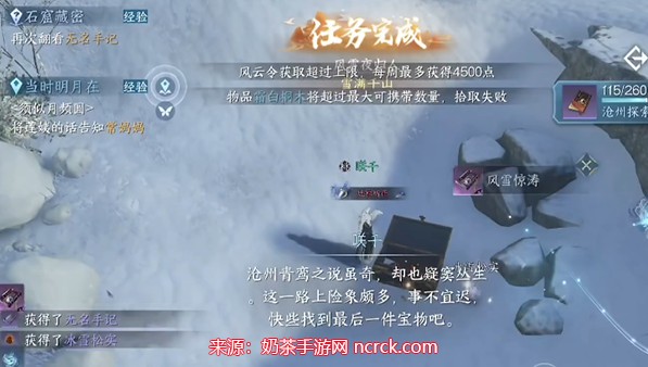 14、完成之后,就可以获取风雪惊涛以及无名手记。