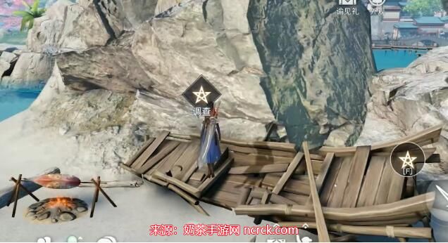 在473,150处,你会找到一艘小船,点击它进行调查。
