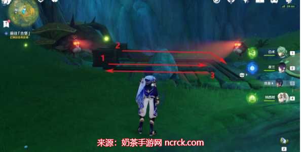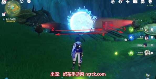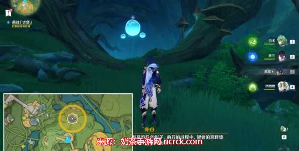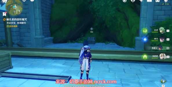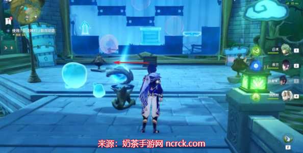 要获取原神瞳孔中的固形魔咒,首先我们需要前往琉形蜃境。在进行该任务之前,确保已完成地图开图的前置4个任务。一旦准备就绪,我们来到寄想者剧场,根据下图标记单位位置找到一个小水珠,并与其对话。