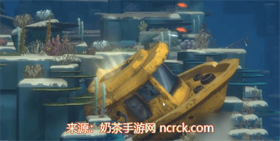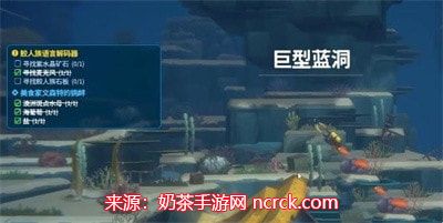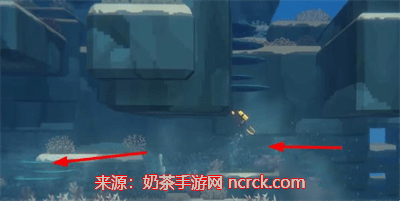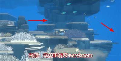 1.首先完成任务调查可疑珊瑚,从章鱼洞穴出来向右下方游动。