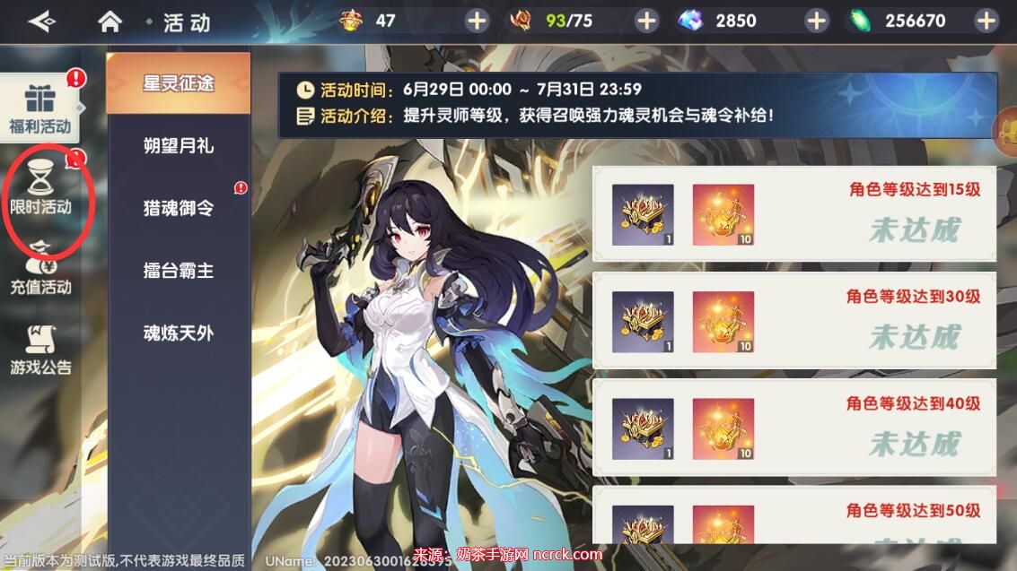 2、进入活动系统后,点击左侧的限时活动菜单。