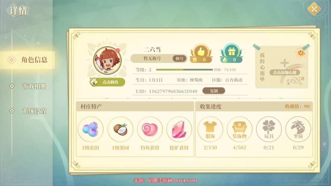 1、在织梦森林游戏界面,点击默认的游戏头像,进入角色详情界面。