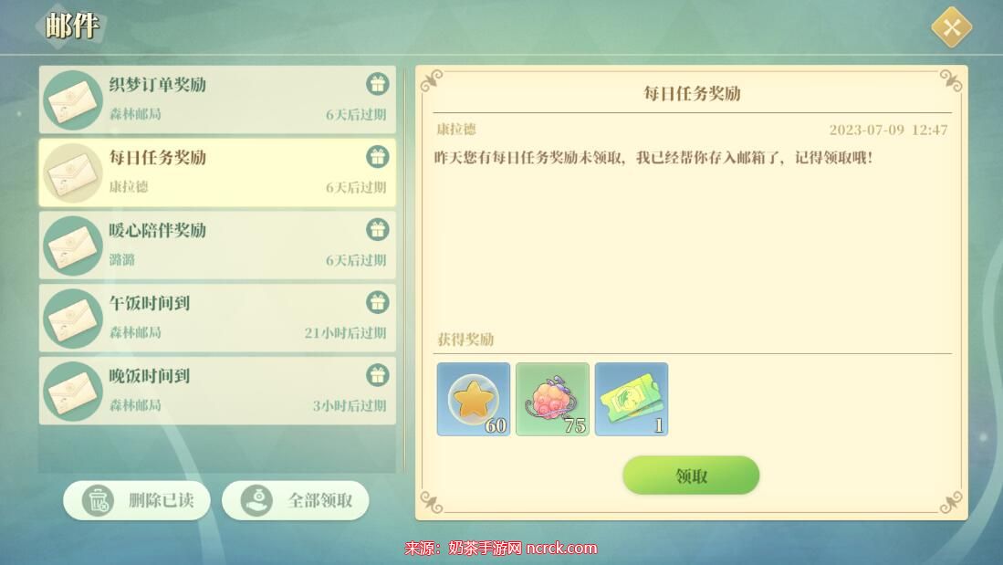 5、兑换成功后,回到织梦森林游戏界面,点击邮件图标,即可领取你的奖励。