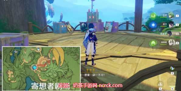 击败爪牙后,我们继续乘坐飞船,抵达木制平台。在这里,我们需要与映灯对话。完成对话后,进入下一个挑战。