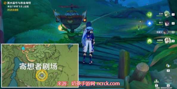 完成前置开图任务后,前往寄想歌剧院与喇叭对话,接取任务。这将启动黑水晶号与吞金海怪任务。
