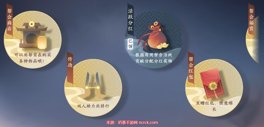 活跃分红:帮会每周会根据成员的活跃度发放交子,作为额外的奖励。