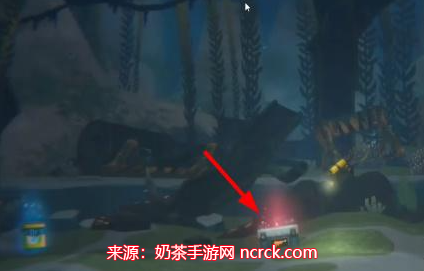 当螳螂虾跳起并刮起海浪、用力捶地,并蓄力准备攻击时(如下图所示),我们需要迅速拉起下图的开关。这将触发机关,吸引螳螂虾优先攻击机关而非我们。