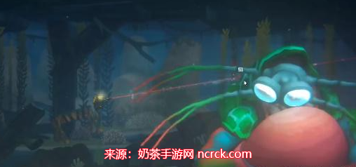 通过将机关向下拉,使一个重物掉落,螳螂虾会优先攻击掉落的重物。利用这个机会,我们可以避免受到螳螂虾的攻击。