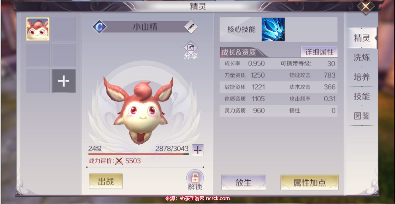 精灵是玩家在达到30级之后可以获得的宠物。它可以漂浮在你身旁与你一起战斗,并为你提供助攻或增益效果。选择适合的精灵可以成为强大的辅助,并显著提升你的战力。你可以通过交易所购买精灵,也可以通过修真副本和奶茶图获得。获得精灵后,你可以解锁精灵的各种功能。喂养精灵可以使其升级,从而提升战力。此外,洗练是通过消耗材料来改善精灵的资质。精灵还可以拥有一些主动或被动技能,这些技能同样可以升级,为你提供帮助。