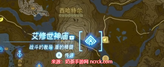 在山上的艾修世神庙处,你可以找到双子驿站的传送点。为了到达那里,你需要挑战盾的精髓。