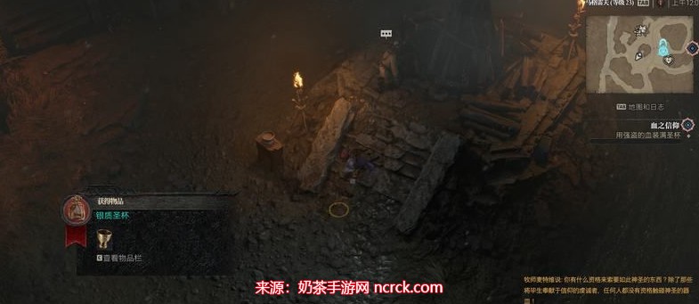 和她对话,修女表示自己的圣杯在上一次驱魔中被污染了,需要新的圣杯。