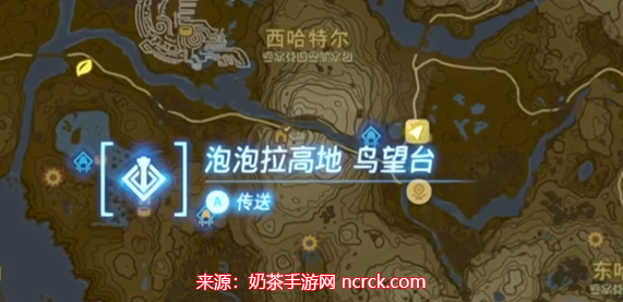 前往下图所示位置,你可以通过旁边的泡泡拉高地鸟望台,然后起飞前往目的地。