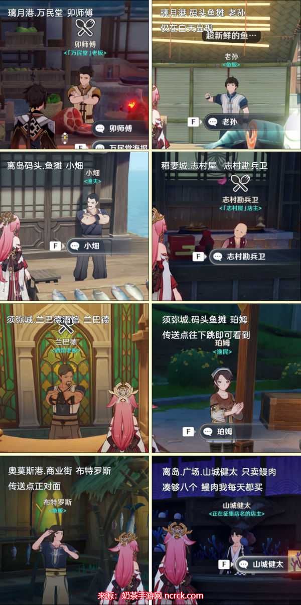 璃月港:可以在万民堂找到卯师傅购买,或者在码头鱼摊找到老孙购买(只在白天出现)。