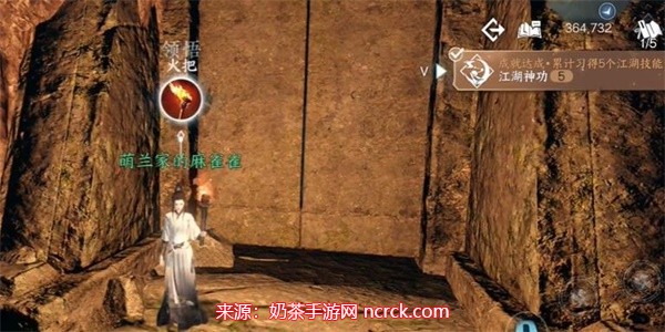 一旦穿过瀑布,你将进入洞穴。此时,你会看到大门口有三个点位,它们被标记了出来。使用火把点燃这三个点位,这样你就能看到一个宝箱。打开宝箱,获取里面的奖励。