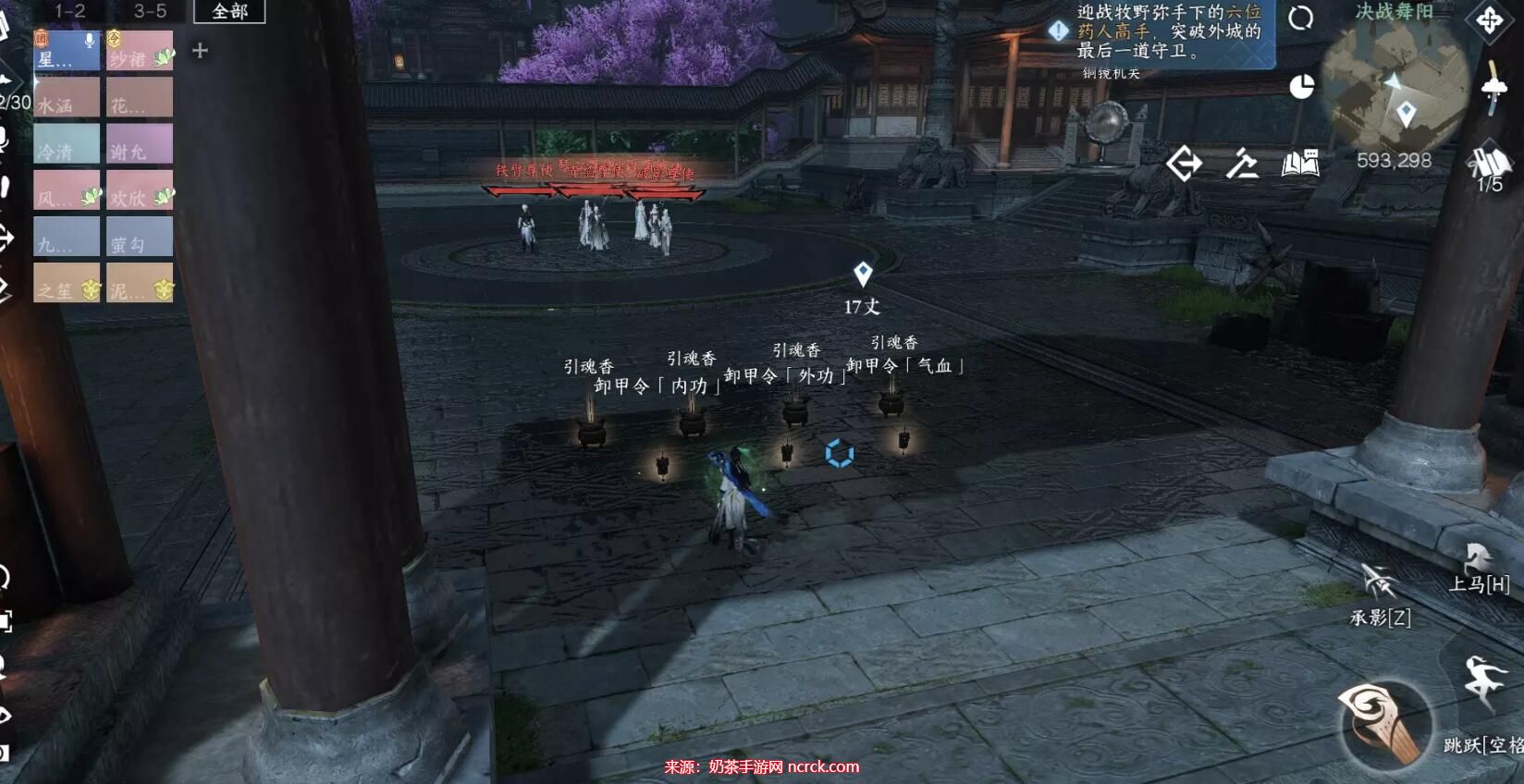 如果发现黑雾过多导致小怪无法击败,铁衣可以使用嘲讽技能将小怪从黑雾中拉出(或者神相使用冰火技能混搭来直接驱散黑雾)。